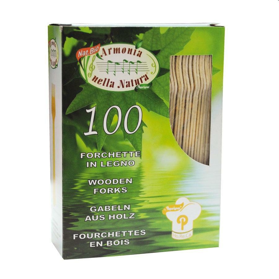 Forchetta in legno naturale biodegradabile prodotta usando soltanto legni certificati FSC
