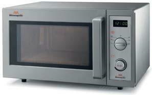 • Forno microonde da 1000 Watt • 6 livelli di potenza per una massima versatilità • Comandi manuali per potenza e timer • Interno ed esterno in acciaio inox • Piatto fisso in vetroceramica • Apertura con pratica maniglia ed ampio vetro per controllo livello di cottura. Dimensioni: 520x442x312 mm Peso: 18 kg