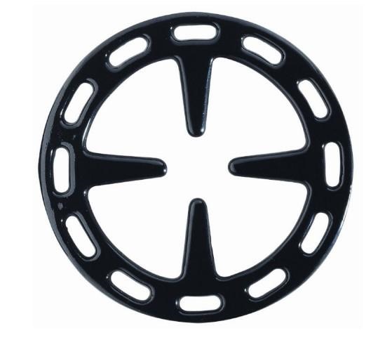 Riduttore universale in ghisa smaltata con diametro di 12 cm, adatto a tutti i tipi di cucina a gas o a fornello. Offre una sicura base d'appoggio per pentole, caffettiere e bollitori, permettendo l'utilizzo di pentolame di piccole dimensioni anche su fuochi di grosso diametro. La dentatura circolare inferiore inoltre evita scivolamenti e garantisce un'ottima stabilità.