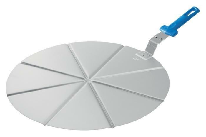 Vassoio utilizzato come base d´appoggio per pizze di grandi dimensioni, le lievi scanalature facilitano e velocizzano il taglio a spicchi della pizza. Manico in polimero speciale alta resistenza al calore (fino a 200°), antiurto e antigraffio. Dimensioni: d.45cm