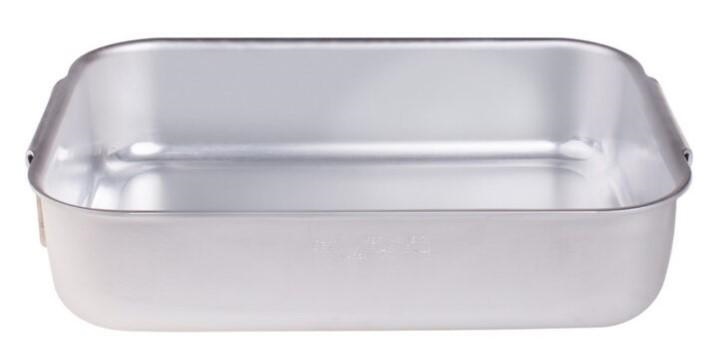 Rostiera rettangolare pesante 2 manici con angoli tondi in alluminio.
