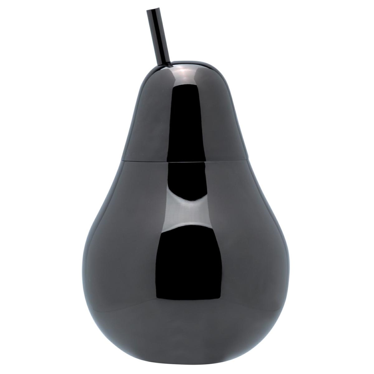 Mug a forma di pera in acciaio con cannuccia Realizzato in acciaio inox. Materiale resistente, igienico e lavabile in lavastoviglie La finitura cromata conferisce al prodotto un aspetto elegante e raffinato Set pratico composto da base, coperchio e cannuccia Capacità: 425ml Colore : nero graffite.